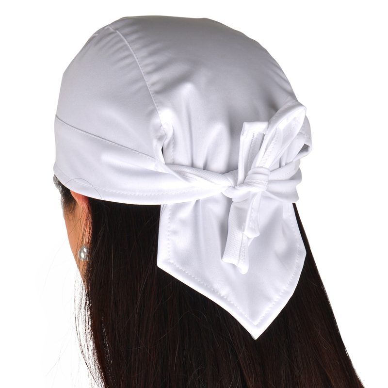 Bandana headgear biocide and waterproof, water repellent, multipurpose, washable and / or autoclavable, DM class I, PPE Cat. 3, white color.